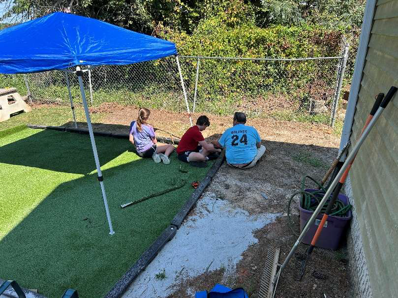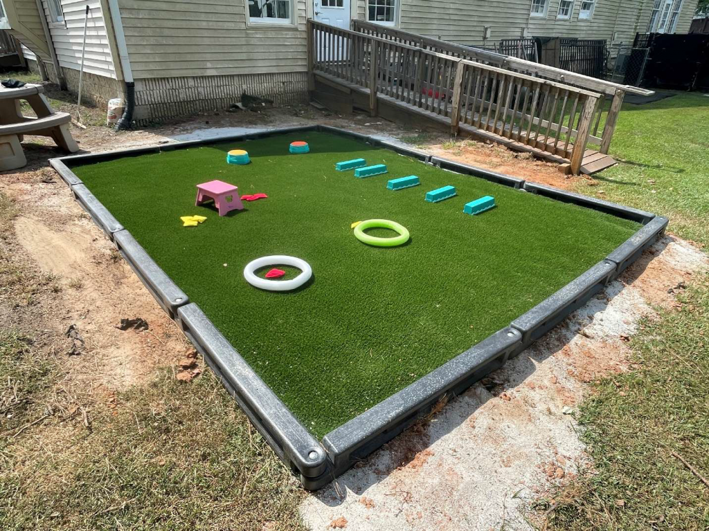 Lifeproof Artificial grass was placed within the bordered area with some extended